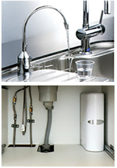 装置の設置は流し台の下に。お台所は今まで通り、スッキリとお使いいただけます。